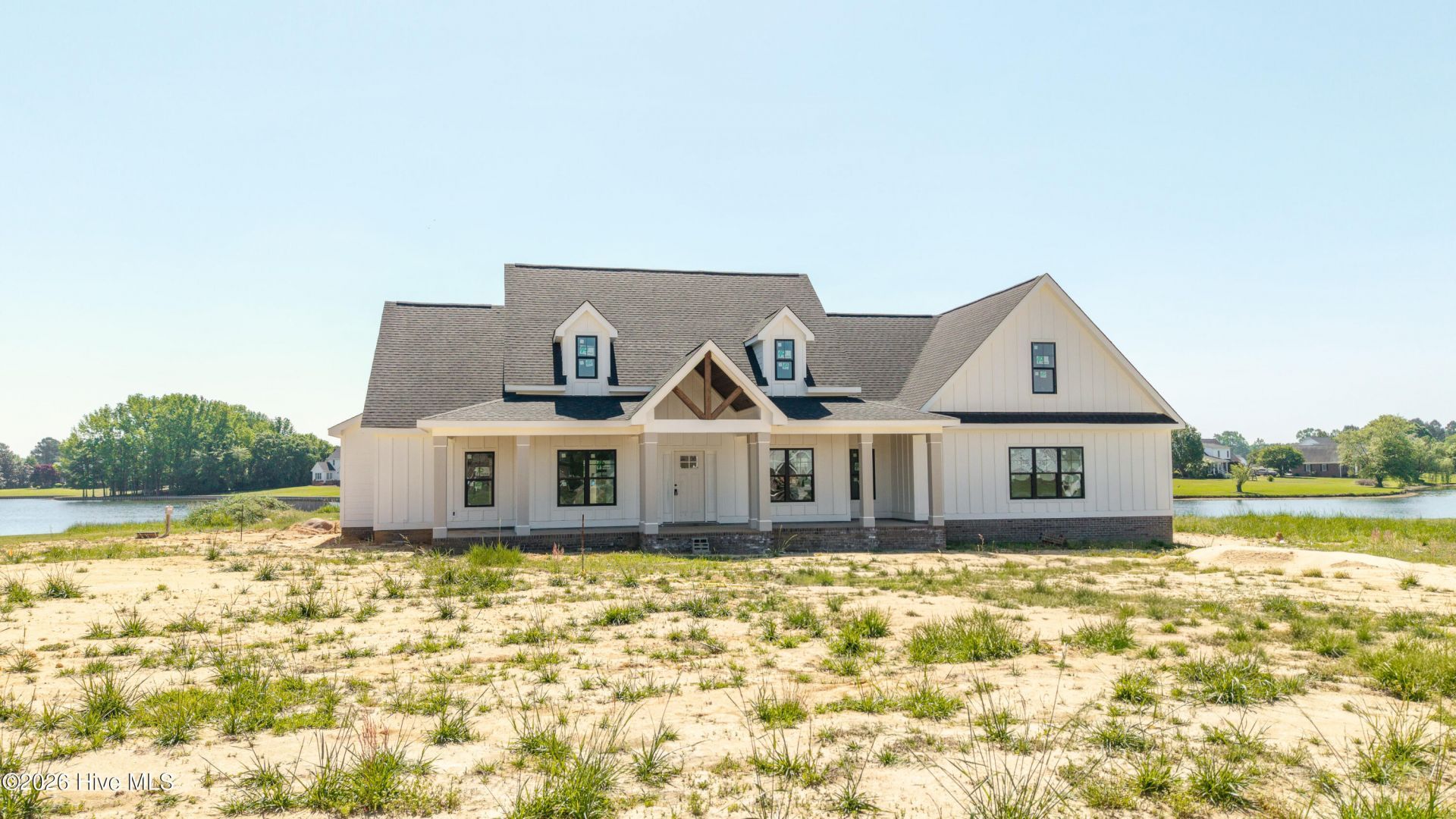Welcome to effortless lake living in the sought-after Timberlake community, where new construction meets timeless design and resort-style amenities.This beautifully crafted home showcases a striking board and batten exterior, complemented by a welcoming covered front porch with rich stained tongue-and-groove ceilings--perfect for slow mornings and evening relaxation. Out back, a spacious covered porch invites you to unwind while taking in peaceful lake views.Inside, you'll find a thoughtfully designed open layout with luxury vinyl plank flooring throughout, blending durability with style. The living room makes a statement with exposed wood beams, a cozy fireplace with brick surround, and custom built-in bookshelves that add both charm and function.The heart of the home--the kitchen--features elegant quartz countertops, a large island ideal for gathering, a farmhouse sink, and custom cabinetry topped with a stylish vent hood, creating a space that's both beautiful and practical.The private master suite offers a true retreat, complete with a spa-like bathroom featuring double vanities, tile flooring, a tiled walk-in shower, and a spacious walk-in closet with built-in shelving, plus an additional separate closet. Convenience meets design as the closet flows directly into the laundry room, equipped with cabinetry for added storage.A split floor plan provides privacy, with secondary bedrooms connected by a Jack-and-Jill bath and featuring walk-in closets with built-ins. Upstairs or tucked away, the bonus room with a full bath offers flexibility for a guest suite, home office, or media space.The home also includes a two-car garage and is located within a gated community offering exceptional amenities--golf, pool, tennis, basketball, and pickleball--bringing a lifestyle of leisure right to your doorstep.Zoned for Clinton City Schools and conveniently located near I-40, this home offers both tranquility and accessibility--making it the perfect blend of comfort, style, and location.Come experience lake living at its finest.