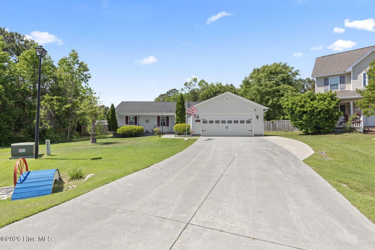 This beautiful 3-bedroom, 2-bathroom home in Justice Farms is truly a piece of heaven. Nestled on an impressive 0.86-acre lot at the end of a quiet cul-de-sac, this property offers exceptional privacy and space that's hard to find. The fully fenced backyard is perfect for pets, play, or entertaining, and a walkway just beyond the fence opens up to additional land, creating an even more expansive feel. Enjoy peaceful mornings and relaxing evenings from the screened-in back patio, the perfect spot to sip coffee, unwind, or host guests while enjoying the outdoors in comfort. Conveniently located just minutes from Topsail Beaches, Stone Bay, and the back gate to Camp Lejeune, this home offers the ideal balance of tranquility and accessibility. Complete with a two-car garage and no HOA, this property combines space, comfort, and freedom.