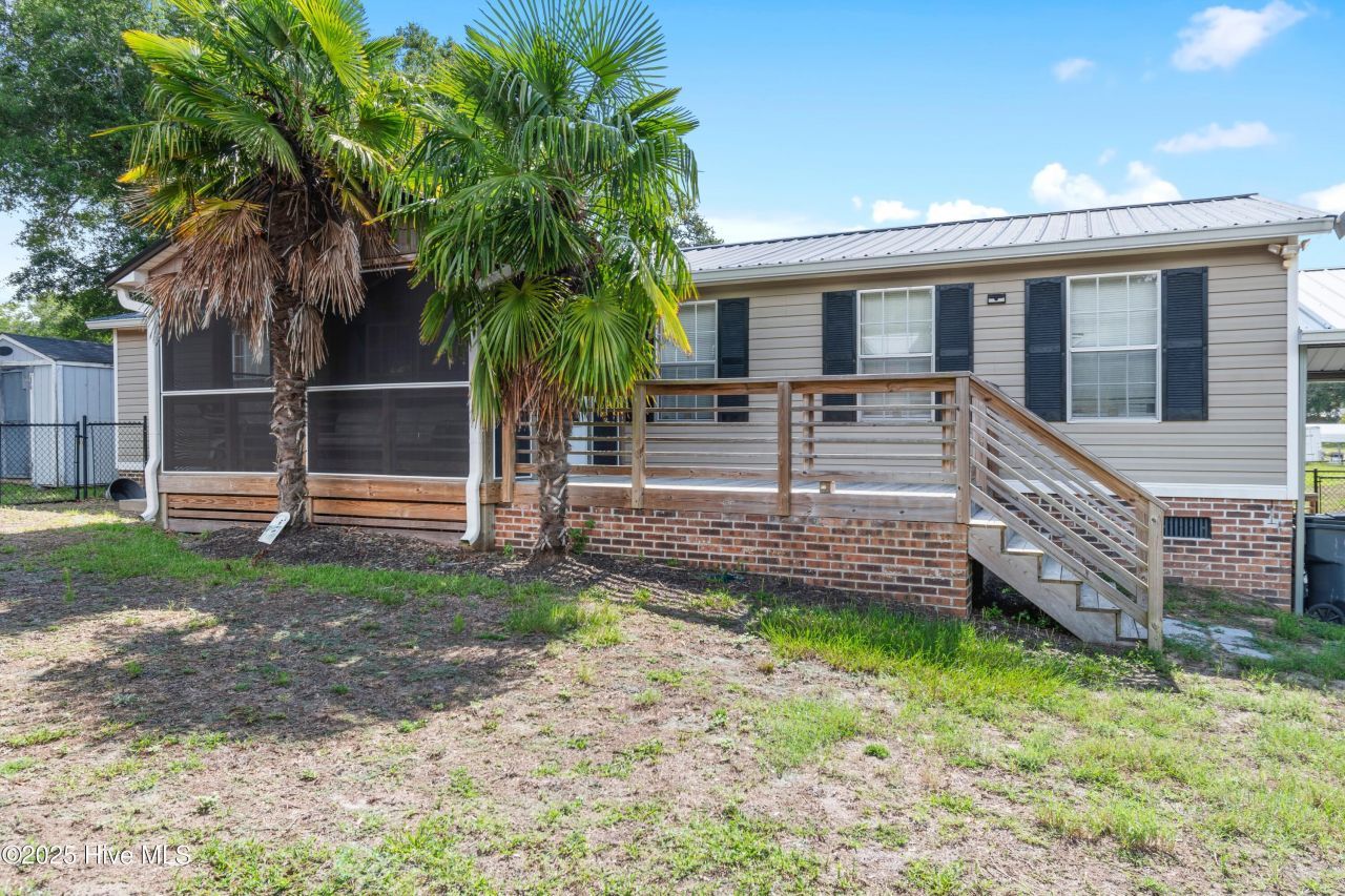 West Tanglewood is a beach lover and fisherman's paradise. Enjoy your new beach home here only 12 minutes+/- from Holden Beach, North Carolina. This double wide manufactured home showcases 3 bedrooms, 2 bathrooms and additional office to be used as you wish. On a warm summer evening enjoy the newly added screened porch as you listen to the crickets and watch the fireflies. This home will come fully furnished and with all appliances, just pack your luggage and move right in! The primary suite will have a large walk-in closet and an en-suite bathroom. In your primary bath enjoy double vanity sinks, a soaker garden tub and a low entry level shower. This split bedroom floor plan will give you privacy from guests. LVP wood flooring is found in your living area, where you can enjoy a spacious open concept. The double carport will give you extra space for storing all of your beach toys, from golf carts to boats, make this space your own. The backyard will be fully fenced in with an additional storage building. Metal roof was installed in 2019, HVAC unit was updated in 2017 and a brand new mini split has been installed this year in 2025 to make sure you can cool off quickly after a long day at the beach. The West Tanglewood community will have an optional POA here, upon joining this POA you will have use of the community day dock and boat ramp. The home is serviced by a septic tank pumped in 2023 and used as a vacation residence since that time. Water utilities are connected to the county system, so no need for a well up keep here. Do not wait to schedule your appointment today and view this darling coastal home before it is gone. With many shopping, dining, leisure and medical options within 15 minutes of the property this is the ONE!