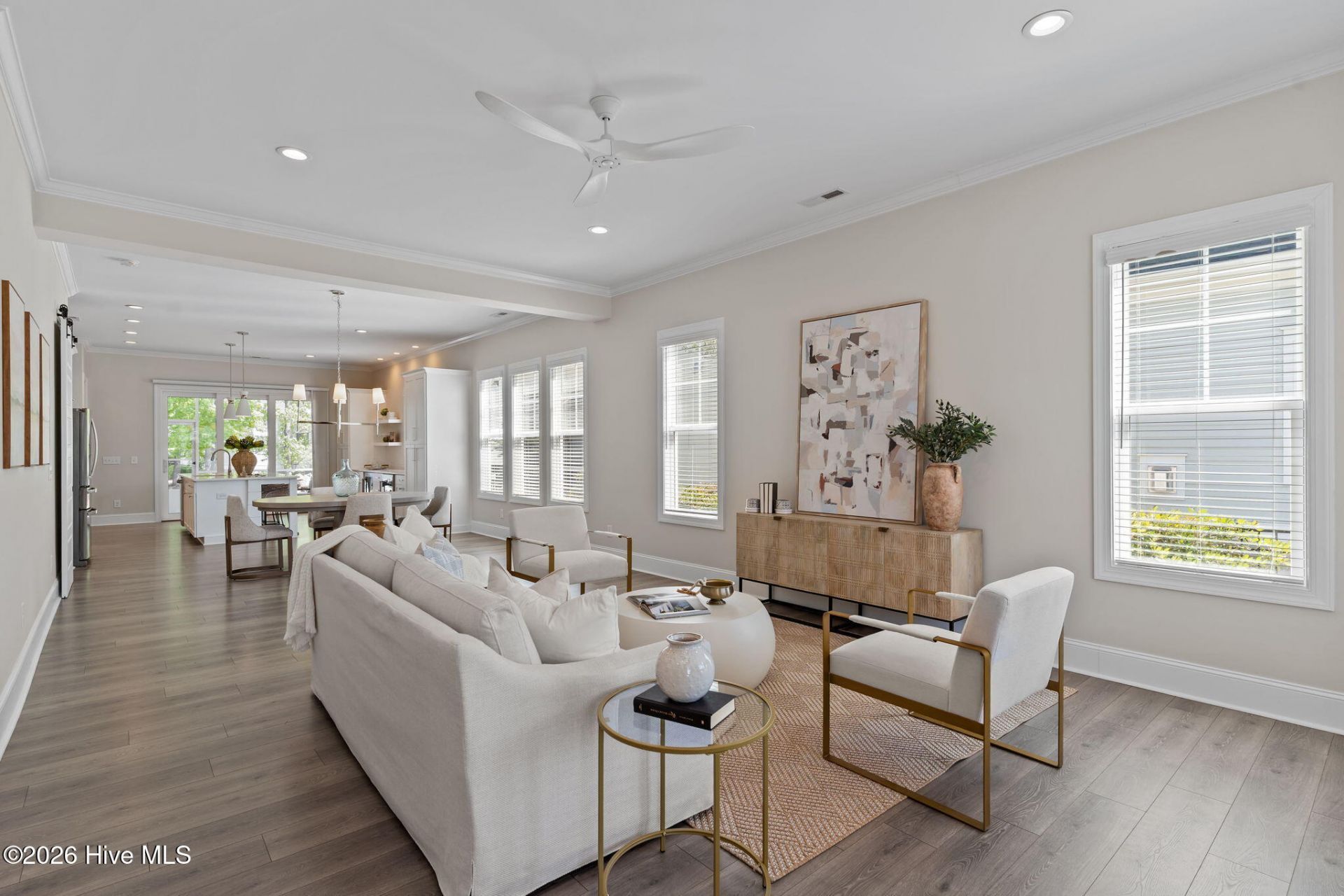 Are you looking for one level living, having a clear view of nature from your front porch and being able to live without compromise -- that is what it is like to live in the River Bluffs Community which is found high above the banks of the North East Cape Fear River in Castle Hayne, NC. Welcome to The Jessamine -- a thoughtfully upgraded, single-story retreat by Richard Wallace Builder, tucked inside the gated riverfront community of River Bluffs. With unobstructed views from the front of the home and rear alley garage access, this 3-bedroom, 2-bath residence at 1,887 sq ft lives larger than it looks and is filled with abundant natural light. From the moment you step inside, the builder-upgraded interior trim package sets the tone: 8' solid core doors, shiplap accents in the living room and kitchen, and a built-in drop zone at the garage entry that keeps daily life beautifully organized. The kitchen is a showstopper -- quartz countertops, under-counter lighting, a built-in beverage bar with dual wine coolers, two generous pantry cabinets, and a complete GE Profile stainless steel appliance package. LVP flooring flows through primary, while upgraded designer ceramic tile completes the laundry room and both baths. River Bluffs delivers resort-style amenities without the need to leave home: a 2,700-foot riverfront promenade, two pools, two fitness centers, marina with boat storage, dock rentals, pickleball, tennis, basketball, a community farm, and the Riverside Kitchen and Bar -- all within a gated, nature-filled setting along the Cape Fear River. Move-in ready down to the details -- blinds throughout and a custom treatment at the slider door mean nothing is left to do but enjoy your home. This is the lifestyle buyer's home -- elevated finishes, effortless flow, and a community designed for the way you actually want to live. Schedule your showing and come see it for yourself.
