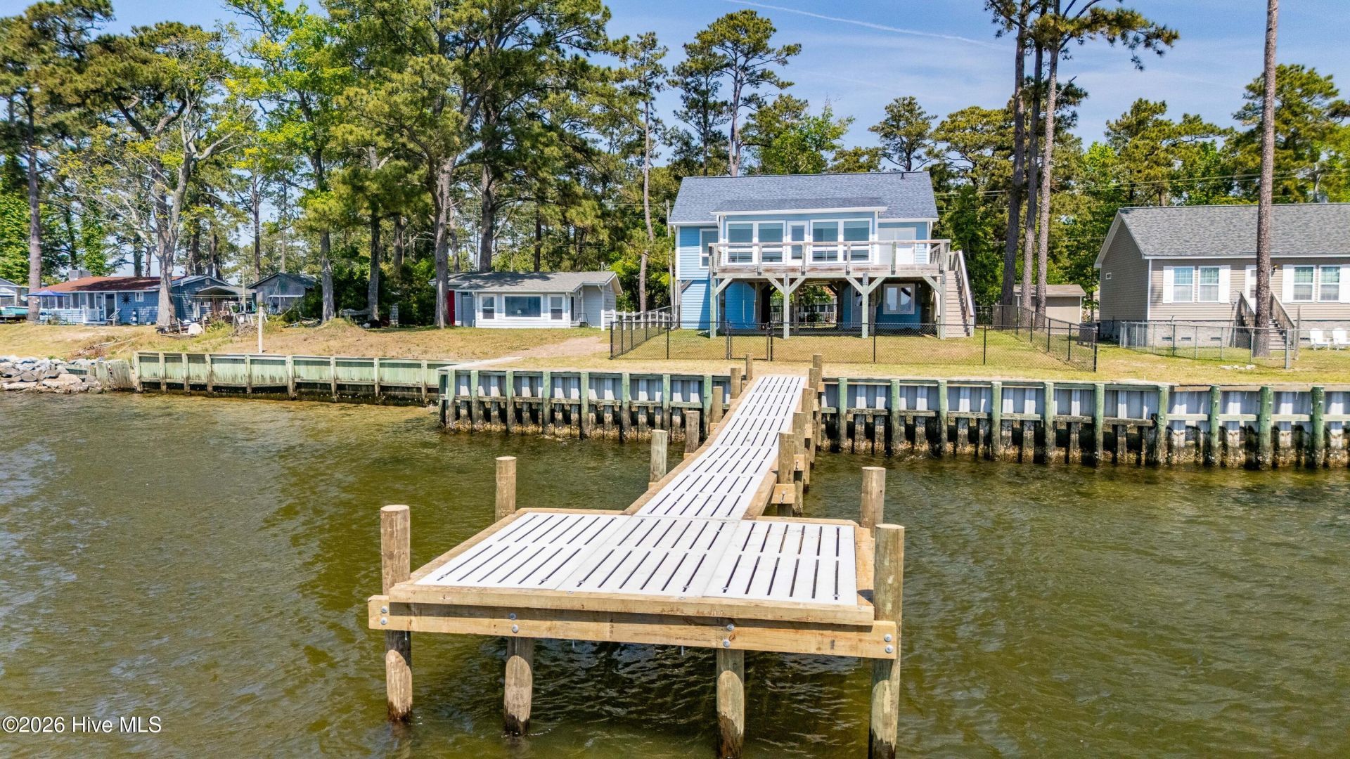 Sweeping waterfront views of the Pamlico Sound, Adams Creek, and the mouth of the Neuse River--just 4 miles from the sailing village of Oriental. Built in 1985 and located outside the flood zone, this beautifully updated coastal home offers approximately 1,640 sq. ft. with 2 bedrooms, 2 flexible bonus spaces, and 2.5 baths.A 2021 renovation refreshed the kitchen and baths with quartz countertops, tile backsplash, and Merillat Classic soft-close cabinetry with pull-outs. Restored wide-plank pine floors add warmth and character throughout. GE Profile WiFi appliances convey with an 18-month transferable warranty, and the home includes whole-house water filtration with reverse osmosis.Enjoy outdoor living from the 30-ft wraparound deck with stainless railings or the shaded lanai below--perfect for entertaining while taking in expansive water views. Additional updates include LP Smart Siding, energy-efficient windows, recently installed roof, fenced yard, Navy-grade seawall, and powered storage with humidity-controlled exhaust.A newly added private dock (April 2026) extends your waterfront lifestyle, featuring a 50-foot walkway leading to a 15' x 10' platform--offering approximately 450 square feet of space for fishing, relaxing, or simply enjoying the coastal breeze. Fish for Red Drum, Speckled Trout, and Flounder right from your own backyard at this well-maintained coastal retreat.