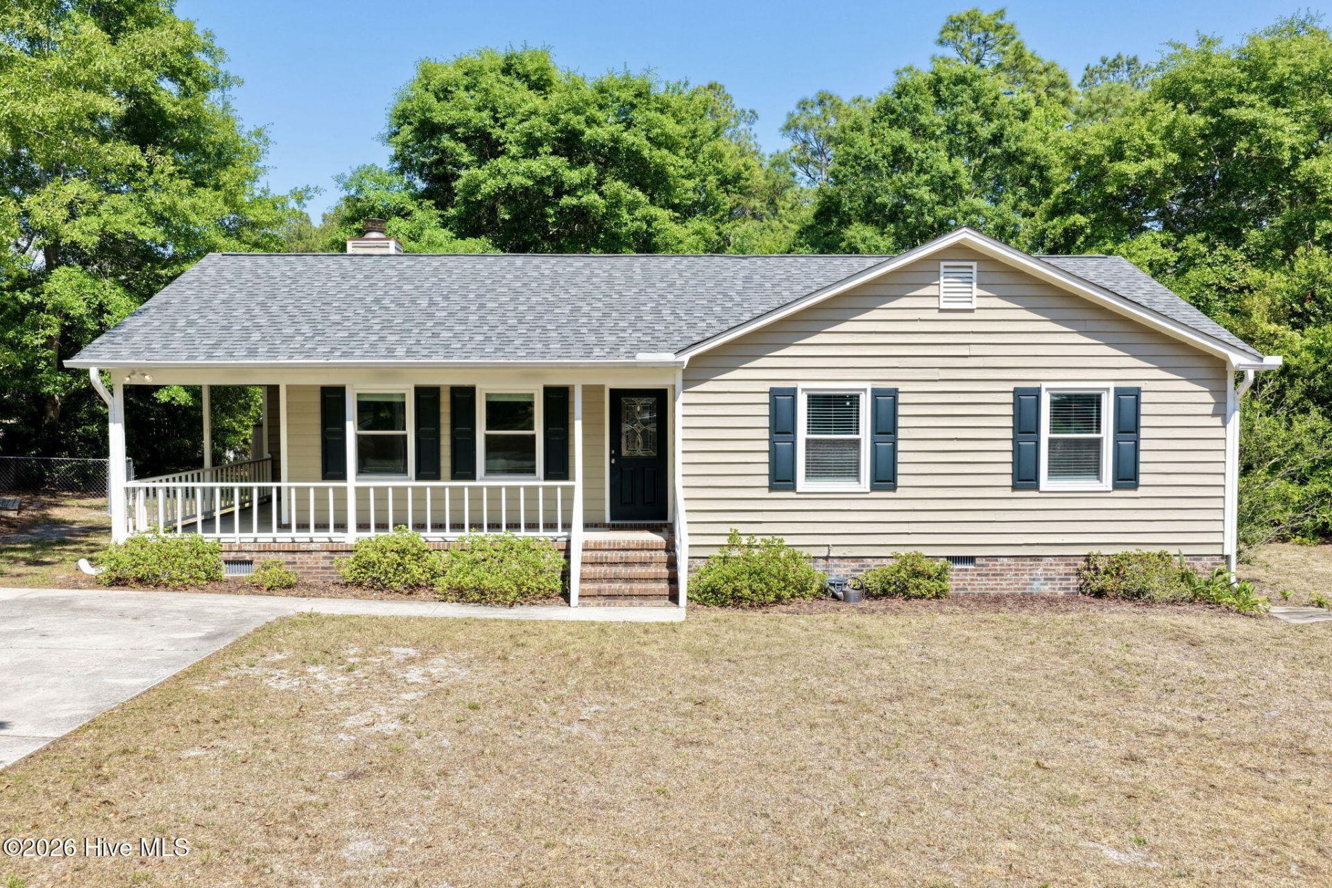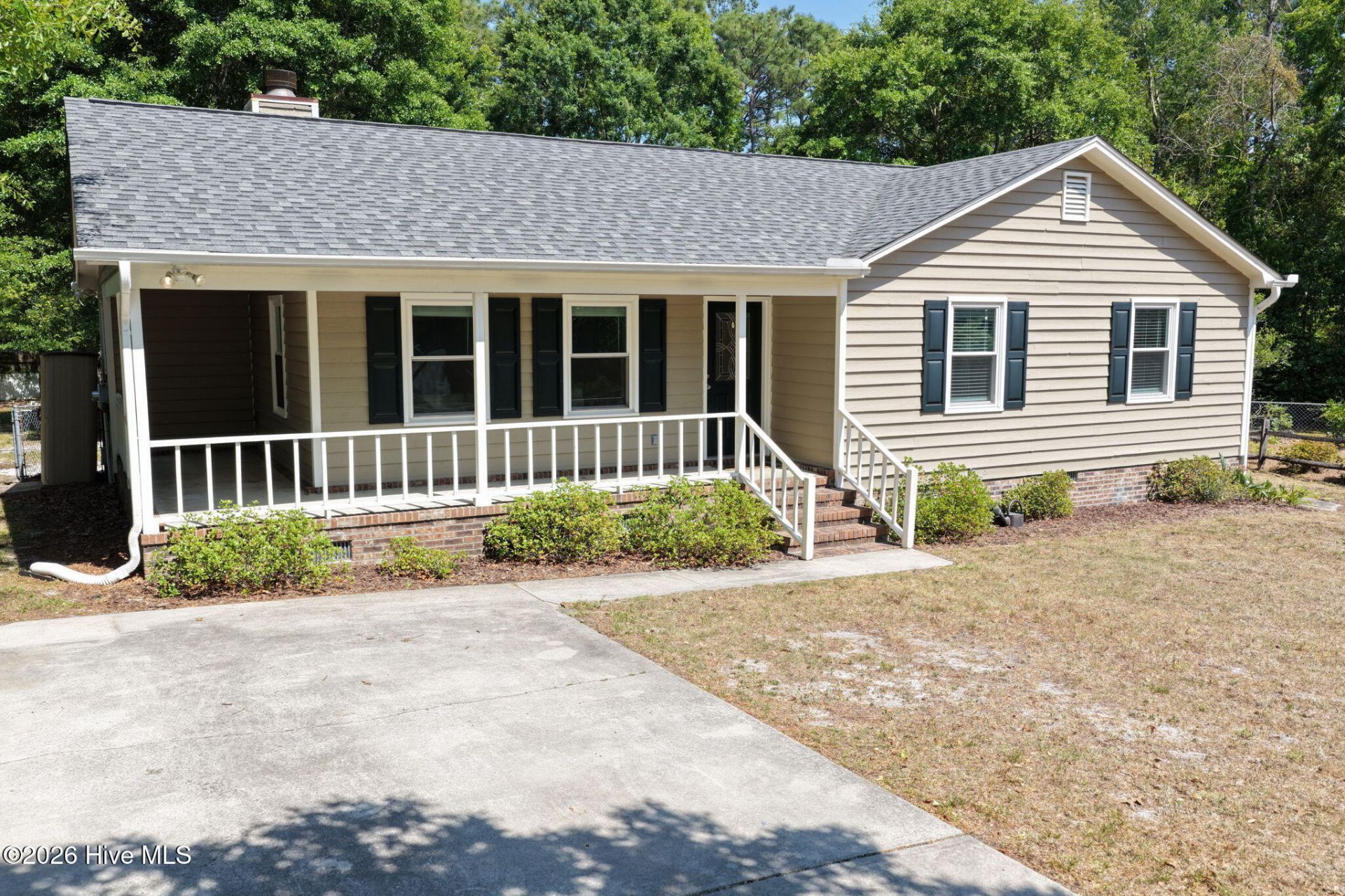 Welcome to this charming 3 bed, 2 bath, ranch home nestled on a quiet cul-de-sac, offering privacy, mature trees, and timeless curb appeal. A spacious wraparound porch creates the perfect spot to relax and enjoy the peaceful setting.The home features freshly painted cedar siding (2024), a roof replaced in 2019, and a brand new water heater (2025), providing added peace of mind. Inside, you'll find engineered bamboo flooring, double-hung vinyl windows (2016), and a cozy wood-burning fireplace that anchors the main living space.Additional upgrades include Leaf Guard gutters and encapsulated crawlspace with dehumidifier, supporting energy efficiency and moisture control.Step outside to a large, fenced backyard complete with mature landscaping, blueberry bushes, and a 10'x30'' shed with roll-up door. Ideal for storage, hobbies, or workshop space.This property offers comfortable single level living with thoughtful updates throughout.