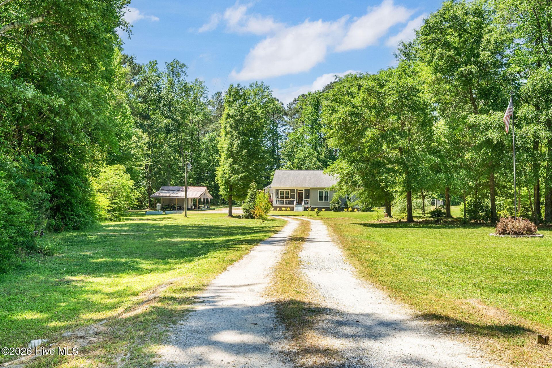 Welcome home to this stunning property boasting 13+/- acres on two parcels in Willard, NC This well appointed home features 3 bedrooms, 2 1/2 baths and upgrades galore! Home being professionally measured on April 28th (as Heated GLA is from prior MLS data at time of MLS entry). The kitchen is fresh and bright with bright white cabinetry, wine frig, leathered granite counters, custom tile backsplash, and stainless modern appliances. A convenient kitchen bar area allows you to serve quick dinner meals or sit and chat away with friends while cooking dinner. The kitchen has an open concept design leading into the main living area and breakfast nook- making entertaining easy. A custom stone fireplace is served by propane heat and custom cabinetry on both sides is convenient for a cute coffee station or serving cocktails while you watch the Sunday game on TV. An all seasons room showcases a floor to ceiling sliding glass wall. This gives you unobstructed views to the den and kitchen - simply slide it open and easily expand your entertaining capacity. .Garage has split unit in it for dogs comfort. The homes large master suite showcases a tongue and groove tray ceiling, and a stunning en- suite bath with a modern freestanding tub and walk in shower. A large closet and double vanity complete the space- perfect for couples. Additional features of this home include stunning crown molding, custom plantation shutters throughout, two outbuildings, and a chain link fenced in back yard space for your pets. Outside, a carport and attached oversized single car garage sit on the back of the home. The garage offers storage space for a vertical freezer or frig and has a mini split unit in place to heat / cool the space.. A detached shed is also included in the sale and is presently utilized by sellers for dog grooming purposes. This shed has hot running water, great cabinetry for storing supplies, window a/c unit and a propane heater. The is perfect for an office, art studio or continued use as a dog house for your spoiled pooch! A second larger outbuilding is well equipped with covered outdoor storage space and has concrete in place giving you covered space to dine outdoors and store your outdoor equipment as well as an outdoor sink. This building is perfect for the avid outdoorsman and would make a great trophy room, or man cave. Two propane tanks serve the home -the first serving the main fireplace, while a second tank serves the grooming shed, outdoor grill area, and wall heater. An encapsulated crawlspace is already in place. There is a creek on the property as well. Enjoy country living and watch wildlife on your own property. The main home is not in a flood zone but, creek area is. Conveniently located to Wallace, Burgaw, Wilmington and Jacksonville. NO HOA Fees./Covenants apply. Ask realtor for a copy. $300 year Road main. fee.