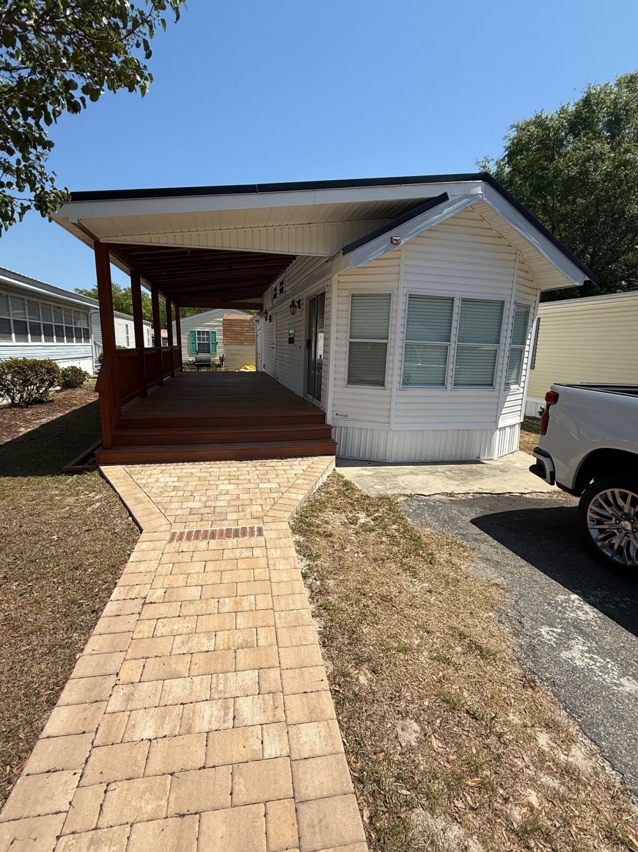 Park model mobile home has 1 bedroom, 1 bath and a loft which can be a second bedroom. It has a storage building with washer and dryer. The RV park is golf cart friendly and has 2 pools, 2 clubhouses and tennis courts, game room and more. This unit has a huge deck that could be screened in or closed in to add more square footage. Come take a look at this one before it gets gone.