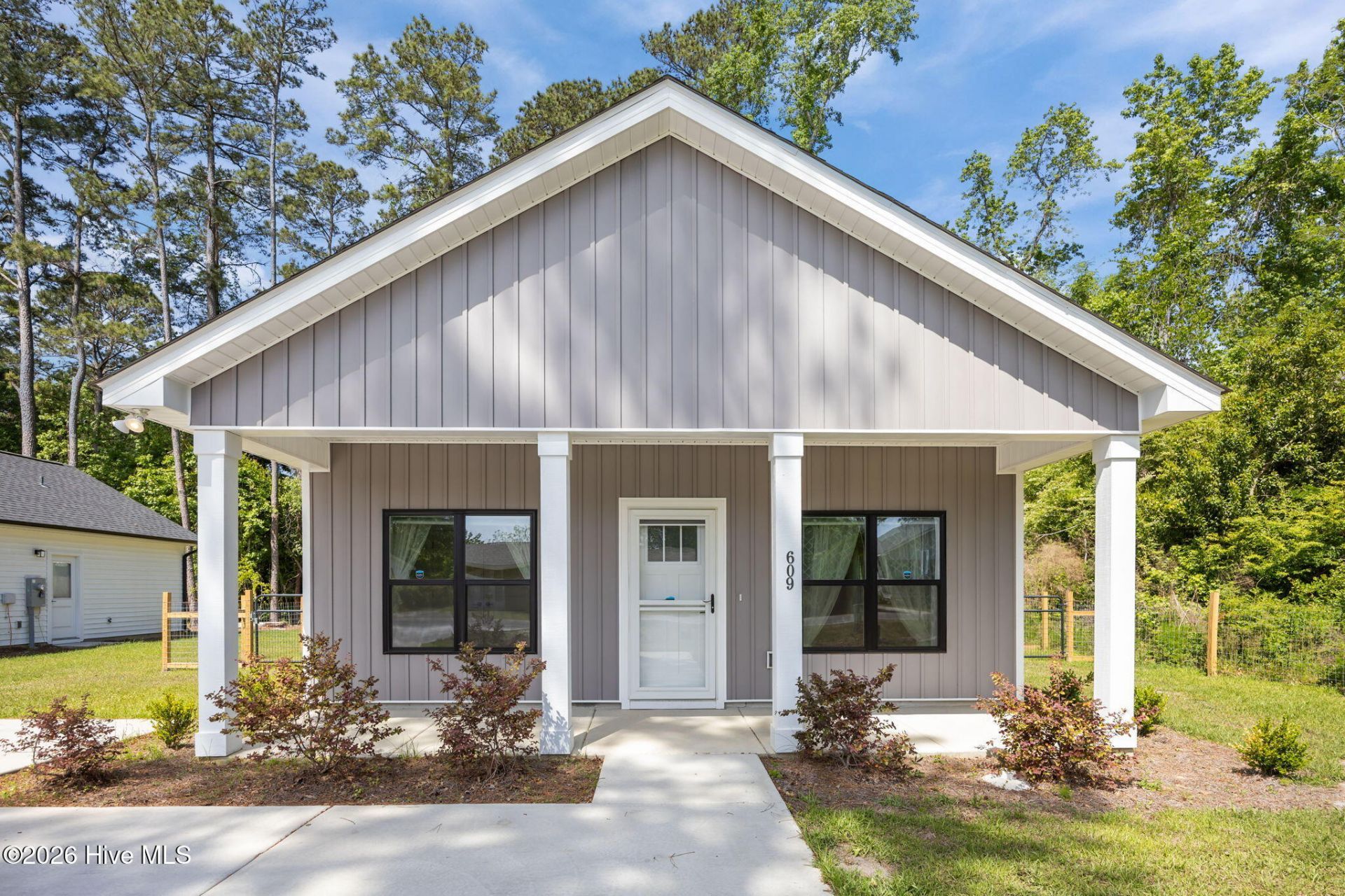 Welcome to 609 N Timberly Lane in Burgaw, where newer construction, stylish finishes, and small-town charm come together in a location that makes everyday living easy. This 3-bedroom, 2-bath home offers a bright open layout, modern kitchen cabinetry, updated lighting, and a comfortable one-level design that feels both inviting and functional. Built in 2025, the home offers low-maintenance living on an approximately 0.27-acre lot, with public listing details noting features such as 9-foot ceilings, recessed lighting, shaker-style cabinetry, craftsman trim, and a covered front porch. The location adds even more appeal, with about a 30-minute drive to Wilmington, about an hour and 45 minutes to Raleigh, with convenient access to Interstate 40 for an easy commute or weekend travel. Area beaches are also within reach for a day on the coast, making this home a strong option for buyers who want comfort, convenience, and connection to both city amenities and coastal destinations. Shed is included in fenced in backyard! Schedule your showing today before it's gone tomorrow!