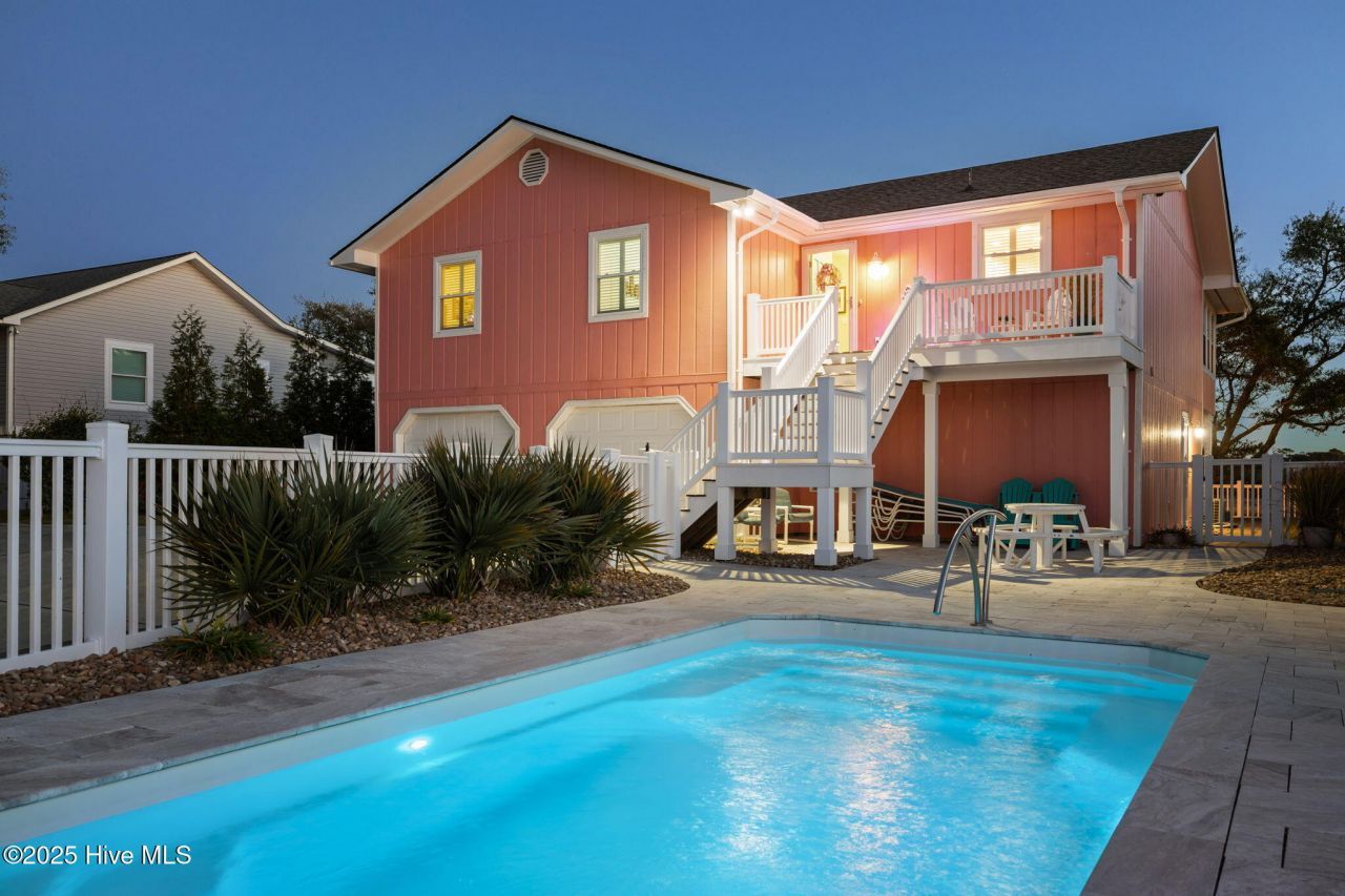 Waterfront Elegance on Archer's Creek ? A Rare Emerald Isle OfferingExperience refined coastal living on the tranquil waters of Archer's Creek with this beautifully maintained, elevated residence?perfectly situated outside the flood zone and designed for an unmatched blend of comfort, style, and functionality. Nestled in the heart of Emerald Isle, this home places you just minutes away from local shops, restaurants, and beaches?truly at the center of it all.Thoughtfully designed as a 4-bedroom, 3-bath home with a private office, the layout provides exceptional flexibility for families, guests, and multigenerational living. The second floor, serving as the main living level, showcases a stunning remodel with an upgraded kitchen, refreshed bathrooms, and a warm, inviting flow that leads directly into the home's signature Carolina room?the sellers' private sanctuary. Here, mornings are made for coffee and breathtaking sunrises over Archer's Creek, setting the tone for peaceful, inspired days. It's the heart of the home, blending comfort with natural beauty.This level also hosts the primary suite, office, laundry closet, and a second bedroom, creating a thoughtfully designed everyday living space. The first floor functions as a retreat of its own, complete with a full kitchen, generous living area, two additional bedrooms, and laundry closet?perfect for returning college kids, long-term guests, or weekend visitors. The second laundry adds convenience for day-to-day life.Outside, a heated in-ground pool welcomes you with resort-style charm, while new retaining walls enhance the beauty and functionality of the rear yard, offering a spacious setting for entertaining, relaxing by the water, or enjoying unforgettable evenings beneath the coastal sky. Parking is abundant with an attached 2-car garage, detached 2-car garage, and an oversized driveway ready for gatherings and storing all your vehicles, golf carts, boats and additional coastal toys. For those who cherish the water, the private dock with two lifts makes boating, fishing, and sunset cruises effortless. Drop your boat and be on the water in minutes, embracing the Emerald Isle lifestyle at its fullest. The home is thoughtfully equipped with a whole-house generator and a private deep well for irrigation, ensuring comfort, reliability, and a lush, vibrant landscape year-round.Every detail of this home invites you to imagine life here: sunrises over the creek, afternoons spent on the water, evenings entertaining under the stars, and the freedom to explore town by golf cart. This is more than a residenceit's your gateway to the Emerald Isle coastal lifestyle, a rare offering where waterfront elegance meets convenience, charm, and timeless appeal.Your waterfront masterpiece awaits.