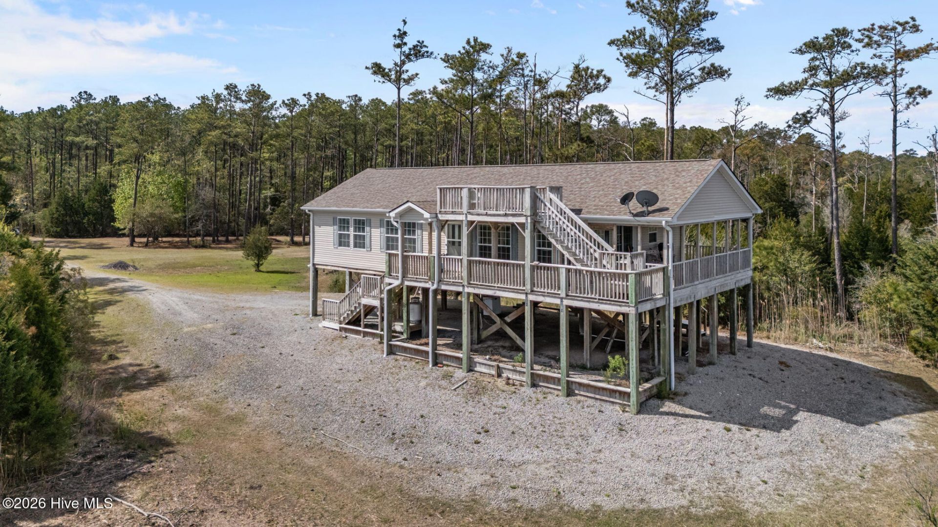 Welcome to your ultimate Eastern North Carolina sportsman's retreat--approximately 20± acres of prime waterfront property in Pamlico County. Tucked away over 2,200 feet down a private drive off the paved road, this secluded haven offers unmatched privacy and a true escape into nature.Designed with the outdoor enthusiast in mind, this property is a hunter's and fisherman's dream. Boasting roughly 2,300 feet of water frontage along Riggs Creek and Morris Creek, you'll enjoy direct access to excellent fishing waters and one of the area's most sought-after duck hunting locations. The expansive shoreline provides ample opportunity for multiple duck blinds in a proven, high-traffic flyway.A beautiful dock is already in place, complete with a 15,000 lb boat lift, deep water access at the end, and plenty of space to accommodate multiple boats. There's even a small boat launch area on-site, making it effortless to get out on the water whenever you choose.The lodge offers 1,383 square feet of comfortable living space, featuring 3 bedrooms and 2 bathrooms. Enjoy breathtaking panoramic views of the Bay River from both the rooftop and front porch--where you can truly see for miles across the water. The home also includes covered parking underneath, adding convenience and functionality.Additional improvements include two utility buildings ideal for storing ATVs, UTVs, boats, and gear, along with a large equipment shelter. The land itself is rich with wildlife, offering opportunities to hunt deer, turkey, and even bear right from your own property.Whether you're casting a line, setting decoys, or simply relaxing by the water, this one-of-a-kind waterfront lodge delivers the perfect combination of recreation, comfort, and seclusion. A rare opportunity to own a true outdoor paradise in one of North Carolina's most desirable coastal regions.